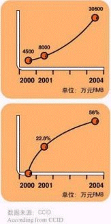 - 在CRM方面,2000年產(chǎn)值為50億美元,預(yù)計(jì)在2004年市場產(chǎn)值將達(dá)到190億美元。