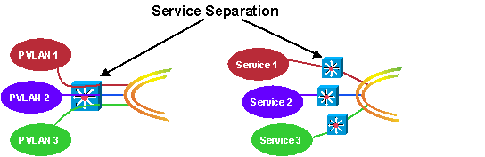 利用這種設(shè)計(jì),服務(wù)必須在連接網(wǎng)絡(luò)主體前進(jìn)行劃分。圖1右側(cè)對在DWDM網(wǎng)絡(luò)中將各項(xiàng)服務(wù)分配至不同設(shè)備的方式進(jìn)行了介紹。 這樣就形成了融合物理骨干網(wǎng),但各網(wǎng)絡(luò)獨(dú)立。這種融合骨干、獨(dú)立網(wǎng)絡(luò)的方式實(shí)現(xiàn)了非常高的網(wǎng)絡(luò)安全性,但也增加了開支。圖1左側(cè)介紹了獨(dú)立于DWDM環(huán)的單一設(shè)備,服務(wù)是由虛擬LAN(VLAN)或?qū)S肰LAN來劃分的。