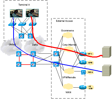思科智能機(jī)場解決方案采用了多種聯(lián)網(wǎng)技術(shù)和拓?fù)浣Y(jié)構(gòu):電子商務(wù)基礎(chǔ)設(shè)施(物理層)、智能網(wǎng)絡(luò)服務(wù)和大量的可行設(shè)計(jì)和架構(gòu)。思科機(jī)場網(wǎng)絡(luò)架構(gòu)由經(jīng)過思科企業(yè)解決方案設(shè)計(jì)測試實(shí)驗(yàn)室預(yù)測試的成熟網(wǎng)絡(luò)部件組成。這些經(jīng)過測試的設(shè)計(jì)則是基于經(jīng)由構(gòu)建全球最大的網(wǎng)絡(luò)而得出的最佳實(shí)踐。測試結(jié)果請參見"解決方案參考設(shè)計(jì)指南
