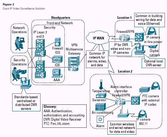 盡管圖中描述了眾多不同的網(wǎng)絡(luò)模塊,此架構(gòu)可相當(dāng)簡單地加以總結(jié)。除安全運(yùn)營中心外,所有視頻獲取和監(jiān)控設(shè)備都位于網(wǎng)絡(luò)邊緣。在總部和遠(yuǎn)程地點(diǎn)設(shè)計(jì)中,它們都與接入層交換機(jī)連接。安全運(yùn)營中心可被認(rèn)作為一個新模塊,但也有人認(rèn)為它只是另一初始管理模塊。其差別只是管理采取了物理安全的形式。
