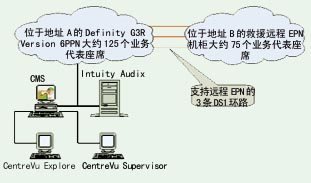 Call Receipts呼叫中心在地理上位于兩個不同的位置,透過Avaya的DEFINITY系統(tǒng)的T1遠程能力,作為一個整體的虛擬呼叫中心運作。圖1給出了Call Receipts呼叫中心的顧客環(huán)境,從中可以看到,呼叫中心所在A和B兩個不同的地點之間由3條T1線路連接,來自網(wǎng)絡的中繼線可以到達A和B中的任何一個。顧客可以向A、B之中的任何一個發(fā)出呼叫,呼叫可以很方便地連接到另一個地點的業(yè)務代表。呼叫中心的主系統(tǒng)處理器安裝在地點A,而遠程地點B則使用了一個待用處理器(稱為救援遠程處理器),以便在T1線路中斷時作為獨立的呼叫中心運行。