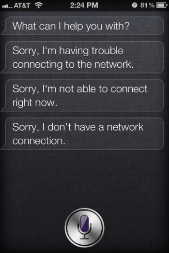 VentureBeat正在與蘋(píng)果聯(lián)系以獲取進(jìn)一步的消息,該網(wǎng)站早已致電蘋(píng)果客戶(hù)服務(wù)中心。盡管他們建議用戶(hù)可以重啟WiFi甚至手機(jī),可Siri依然無(wú)法連接到服務(wù)器。據(jù)蘋(píng)果客服主管反映,這完全可能是因?yàn)檎麄(gè)網(wǎng)絡(luò)已中斷。