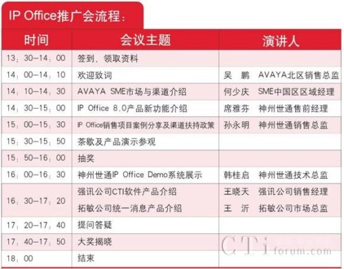 CTI論壇(ctiforum)3月6日消息(記者 潘婷婷): 2011年憑借廣泛的市場宣傳,Avaya IP Office以卓越的產(chǎn)品性能,突出的價格優(yōu)勢得到了廣大代理商的大力支持,取得了優(yōu)異的市場業(yè)績。為了與更多合作伙伴加強(qiáng)交流、密切合作,AVAYA 攜手神州世通,舉辦2012年Avaya IP Office產(chǎn)品渠道推廣大會,屆時將邀請AVAYA領(lǐng)導(dǎo)、產(chǎn)品專家為大家講解 IP Offic 8.0新版本功能、分享經(jīng)典案例。同時神州世通將推出2012年代理商渠道扶持政策。
