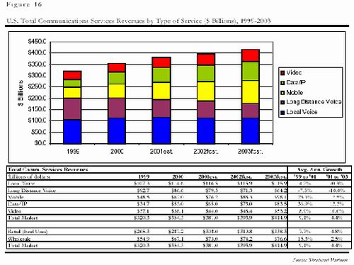 電信市場(chǎng)不是一個(gè)孤立的市場(chǎng),而是由電信服務(wù)和電信制造兩個(gè)緊密相連的市場(chǎng)組成的。電信制造業(yè)不斷進(jìn)行研發(fā)創(chuàng)新,為電信服務(wù)業(yè)提供新的業(yè)務(wù);而電信服務(wù)也利用電信制造業(yè)的新技術(shù),并把這些服務(wù)最終提供給商業(yè)和普通消費(fèi)者兩類用戶?梢哉f(shuō),電信制造業(yè)的發(fā)展在很大程度上是由電信服務(wù)業(yè)決定的。要了解電信制造市場(chǎng)的將來(lái),不得不從電信服務(wù)市場(chǎng)的變化談起!