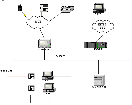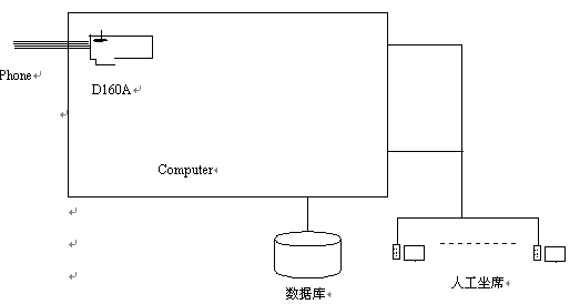 整個(gè)系統(tǒng)主要由CTI服務(wù)器(語音處理服務(wù)器)構(gòu)成,結(jié)構(gòu)圖如下;跂|進(jìn)D160A的CTI服務(wù)器方便地實(shí)現(xiàn)了 呼叫排隊(duì): 外線呼入時(shí),將呼叫自動(dòng)分配到空閑座席; 座席全忙時(shí),將呼叫進(jìn)行排隊(duì),待座席空閑時(shí),自動(dòng)轉(zhuǎn)接。 自動(dòng)語音提示:外線呼入時(shí),自動(dòng)播放提示語音"您好,歡迎使用XX 系統(tǒng)、自動(dòng)服務(wù)請(qǐng)按0,人工服務(wù)請(qǐng)按1;如果選擇人工服務(wù),座席臺(tái)全忙時(shí),放提示音"服務(wù)臺(tái)正忙,請(qǐng)稍候"。自動(dòng)服務(wù):播放語音提示,指導(dǎo)客戶操作。顧客可以利用音頻按鍵輸入信息;根據(jù)客戶的音頻按鍵播放相應(yīng)的信息,或者進(jìn)入下一級(jí)菜單。坐席服務(wù):外線撥入系統(tǒng)后,如果選擇人工服務(wù),系統(tǒng)將來話與臺(tái)內(nèi)座席接通。