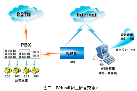 “無聲”一直是企業(yè)電子商務的最大遺憾,因為“無聲”,許多消費者卻步了。怎樣把語音和Web在網(wǎng)絡上結合起來?這正是星際網(wǎng)絡推出的web call系統(tǒng)(如圖二所示)的目標。消費者點擊點擊呼叫按鈕,就可以通過麥克風與客服代表通話。并且網(wǎng)上來電與普通來電一樣,經(jīng)過交換及排隊處理,同樣支持來電資料彈出。對客戶來說,只需要一臺接入Internet的多媒體電腦和免費的客戶端軟件就可實現(xiàn)Web瀏覽和交談功能。這個功能不僅可以讓客戶獲得更好的售后服務,在售前服務中也可以發(fā)揮巨大效用。家電產(chǎn)品的特性使得消費者在購買之前必須對產(chǎn)品有充分了解,在網(wǎng)站瀏覽中通過與客戶代表的交流增進產(chǎn)品了解,刺激其購買欲望。讓家電行業(yè)的網(wǎng)上商務的更有效。