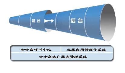 步步高客服體系架構(gòu)在步步高現(xiàn)有的客服中心基礎(chǔ)上,主要由兩部分構(gòu)成:前臺(tái)呼叫中心和后臺(tái)客服應(yīng)用子系統(tǒng)。