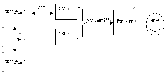 包括客戶資料,銷售報表等相關(guān)的客服信息都存儲在數(shù)據(jù)庫中,通過ASP應(yīng)用程序取出需要的數(shù)據(jù)生成符合條件的XML文檔,再通過安裝在服務(wù)器端的XML解析器按照預(yù)先設(shè)定的排版樣式XSL解析XML文檔,最后生成符合條件的HTML格式的CRM操作界面呈現(xiàn)在客戶面前?蛻魯(shù)據(jù)可能來自不同的數(shù)據(jù)庫,并且都有各自不同的復(fù)雜格式。但客戶與這些數(shù)據(jù)庫間只通過一種標(biāo)準語言進行交互,那就是XML。由于XML的自定義性及可擴展性,它足以表達各種類型的數(shù)據(jù)。客戶收到數(shù)據(jù)后可以進行處理,也可以在不同數(shù)據(jù)庫間進行傳遞。