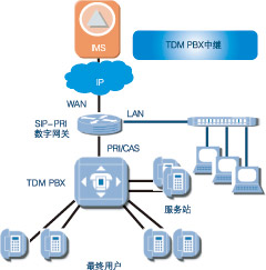 眾多企業(yè)隨著業(yè)務(wù)的擴(kuò)張,開設(shè)了大量的分支機(jī)構(gòu),企業(yè)總部以及分支機(jī)構(gòu)之間的語(yǔ)音溝通非常頻繁,企業(yè)長(zhǎng)途電話費(fèi)用是企業(yè)經(jīng)營(yíng)成本中的一項(xiàng)巨大開支,F(xiàn)階段,多數(shù)的企業(yè)客戶,包括大型和中、小型企業(yè)基本上都采用PBX作為企業(yè)內(nèi)部的通信方式,該方案有天然的優(yōu)越性,如短號(hào)互撥、電腦話務(wù)員、DID等功能,但也有弊端:占用機(jī)房面積大、維護(hù)困難并且不能解決異地長(zhǎng)途通話問(wèn)題。隨著科技的發(fā)展和寬帶接入的普及,幾乎每個(gè)企業(yè)及其分支機(jī)構(gòu)都有互聯(lián)網(wǎng)接入,因此借助現(xiàn)有互聯(lián)網(wǎng),節(jié)約長(zhǎng)途電話成本,日漸成為公司的重要選擇。端到端的多媒體通信和辦公系統(tǒng)的有機(jī)結(jié)合成為更多新型企業(yè)的期待。圖1 TDM PBX Trunking 接入方案