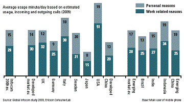 圖2 各個國家或地區(qū)的手機使用時長(因工作與個人因素)