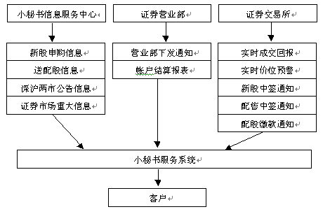 潤能公司小秘書服務(wù)中心每日處理各種公告信息,重大財經(jīng)信息等,并主動發(fā)送到位于券商營業(yè)部的小秘書智能化系統(tǒng)中,由系統(tǒng)對信息進行個性化處理后發(fā)送給客戶。