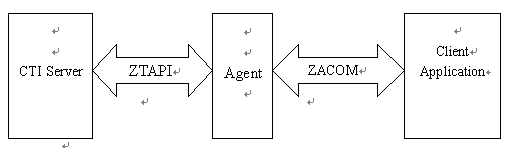 通常呼叫中心的座席軟件都需要用戶定制,以便在標(biāo)準(zhǔn)的座席功能上加入業(yè)務(wù)處理功能,并且要求能與業(yè)務(wù)系統(tǒng)交換數(shù)據(jù)。用戶可以利用ZTAPI接口直接定制自己的座席軟件,也可以使用Agent軟件自帶的COM開發(fā)接口來實現(xiàn)同樣的功能。后者是一種更便捷的機制,因為可以直接使用ZingServ®標(biāo)準(zhǔn)的座席軟件--Agent的座席功能,用戶可以把更多的精力投入到業(yè)務(wù)處理功能,使用ZACOM要求使用時需運行Agent軟件。ZACOM開發(fā)結(jié)構(gòu)示意圖如下: