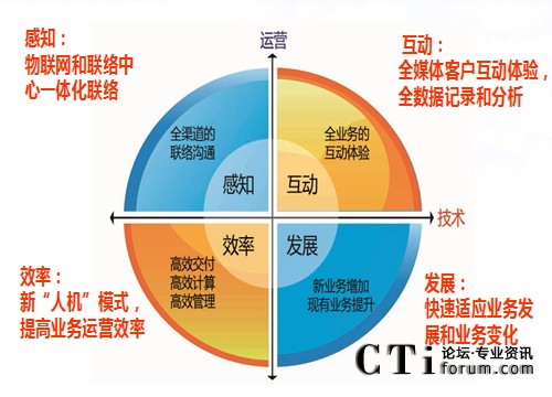 這是“感•動(dòng)中心”的主旨,完全以客戶的業(yè)務(wù)為出發(fā)點(diǎn),體現(xiàn)“以客戶為中心”的理念。而“全景中心”、“聯(lián)絡(luò)中心”等以純技術(shù)為中心,還停留在多媒體通訊和UC通訊手段融合層面,只是新增加了一些新方式的接入等技術(shù),對于客戶業(yè)務(wù)的融合和適應(yīng),并沒有任何提升。