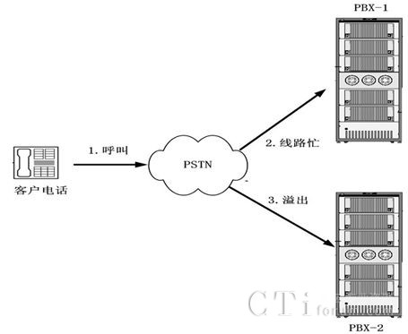多套聯(lián)絡(luò)中心也可以通過PBX語音對接得方式實現(xiàn)呼叫互轉(zhuǎn),其中最典型的應(yīng)用就是溢出呼叫轉(zhuǎn)接,通過交換機轉(zhuǎn)接的方式,實現(xiàn)服務(wù)溢出處理。