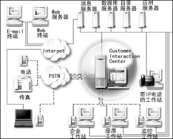 從上面的圖1、圖2中,可以看到IP通信大大簡(jiǎn)化了企業(yè)的網(wǎng)絡(luò)通信結(jié)構(gòu)。但是為了實(shí)現(xiàn)不同的功能和應(yīng)用,網(wǎng)絡(luò)中仍然存在很多的服務(wù)器,各個(gè)品牌不同功能的服務(wù)器之間的協(xié)同成為最顯著的問題,同時(shí)維護(hù)和運(yùn)行這樣大量的設(shè)備也需要大量的資源支持。而且,這僅是單點(diǎn)的客戶服務(wù)中心所需的配備,而在基于IP通信的分布式客戶服務(wù)中心的構(gòu)建中,所涉及的設(shè)備更多。