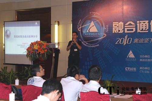 CTI論壇(ctiforum)9月10日消息(記者 楊毅):2010年9月9日奧迪堅在廣州市嘉鴻華美達廣場酒店舉辦的“下一代融合通信平臺華南研討會” 圓滿落下帷幕。本次會議以 “融合通信” 為主題,將最新的由“IPT、IPCC、UC和Mobility”四個部分組成的融合通信技術(shù)完美呈現(xiàn)在嘉賓眼前,吸引了業(yè)界眾多知名廠商和媒體,并得到了奧迪堅在各個行業(yè)的新老客戶的積極響應(yīng)和參與。通過奧迪堅的精彩主題演講、現(xiàn)場的情景秀表演和眾多案例分享等多種形式,與合作伙伴及嘉賓共同探討融合通信技術(shù)該如何發(fā)展、解讀渠道新政策、同時更加深入了解奧迪堅產(chǎn)品,提高合作伙伴在市場上的競爭力。CTI論壇(www.baowending100.com)獨家承辦此次會議,并進行全程報道。