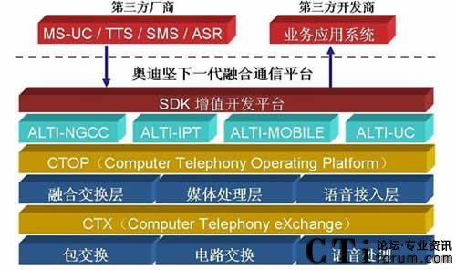 其次,提供業(yè)界領先的CTOP(Computer Telephony Operation Platform)平臺架構,提供三層架構,實現(xiàn)融合交換層,媒體處理層和語音接入層,融合交換層實現(xiàn)IP-PBX、ACD、CTI、IVR、CDR、Voice Mail及系統(tǒng)管理等核心功能;媒體處理層實現(xiàn)IP語音媒體處理功能 ,實現(xiàn)對IP語音通道的通話錄音、基礎IVR等功能,實現(xiàn)會議及監(jiān)控資源等功能;語音接入層,實現(xiàn)外線接入、分機連接等傳統(tǒng)語音網(wǎng)關功能,實現(xiàn)對PSTN外線和模擬分機的通話錄音、基礎IVR等功能 。