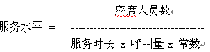 呼叫中心運(yùn)營(yíng)成效具體表現(xiàn)在主要績(jī)效指標(biāo)(KPI, Key Performance Indicator)上面,最常被提出來(lái)做追蹤考核和評(píng)估的就是服務(wù)水平(%)、服務(wù)時(shí)長(zhǎng)、掉線率、人均電話量等。服務(wù)水平是服務(wù)時(shí)長(zhǎng)、呼叫量和座席人數(shù)這幾個(gè)變量的函數(shù),大致上可以下列公式看出變量之間的關(guān)系,