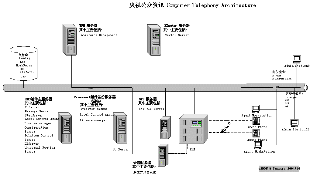 每年中國人傳統(tǒng)的節(jié)、假日,如:春節(jié)、中秋、國慶等,收看節(jié)日晚會(huì)的觀眾都將達(dá)到全年的峰值。與各節(jié)目相關(guān)的觀眾需求也將在此時(shí)給資訊中心帶來巨大的壓力。由于舊有系統(tǒng)無法提供呼叫峰值時(shí)的處理能力,因此經(jīng)過多次國內(nèi)、外考察及系統(tǒng)評(píng)選后,eSOON成為CCTV公眾資訊中心全套客戶服務(wù)中心解決方案(CTI、IVR、CRM)的系統(tǒng)提供商。