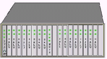 見(jiàn)上圖 DAS120主機(jī)所用的機(jī)框?yàn)?9英寸標(biāo)準(zhǔn)機(jī)框,可直接裝入19英寸機(jī)柜,也可放置在桌面。機(jī)框共有20個(gè)槽口,兩邊可插兩塊電源板PSU,中間插數(shù)字中繼接口板HDT4,其余16個(gè)槽可插15塊模擬用戶板8ALU(或8ATU)。8ALU每塊板為8路,一個(gè)機(jī)框總共120路。