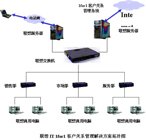 。。其實(shí)早在1998年,公司就開始了企業(yè)信息化管理的嘗試。公司建設(shè)了自己的局域網(wǎng),并開發(fā)出了專門的軟件系統(tǒng)。所有的客戶信息都要求錄入到這套系統(tǒng)中,銷售人員的工作記錄和銷售業(yè)績也要在系統(tǒng)中進(jìn)行登記。只是這套系統(tǒng)的基礎(chǔ)數(shù)據(jù)還是以Word、Excel文檔的形式分別存在,且中間的數(shù)據(jù)缺乏統(tǒng)一接口,無法動(dòng)態(tài)地反映公司整體的運(yùn)營情況,很快就無法適應(yīng)公司業(yè)務(wù)發(fā)展的需要。在這種情況下,公司決定引進(jìn)規(guī)范的客戶關(guān)系管理系統(tǒng)。經(jīng)過多方比較之后,公司選擇了聯(lián)想的IT 1for1客戶關(guān)系管理解決方案。