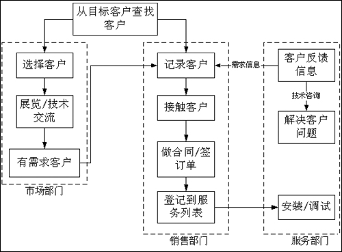 公司從很早就認(rèn)識到經(jīng)營中存在的這些問題,一直在尋找解決的方法和途徑。我們逐漸認(rèn)識到,公司經(jīng)營亟待解決的問題就是如何高效地處理客戶信息、有效地進(jìn)行客戶關(guān)系的管理,這是影響到公司能否獲得更大發(fā)展的關(guān)鍵。因?yàn)樵诠緞倓偲鸩綍r(shí),業(yè)務(wù)人員面對的是很少的客戶群,他們對每個(gè)客戶的具體情況非常熟悉,能夠根據(jù)每個(gè)客戶的不同需求特點(diǎn)提供相應(yīng)的產(chǎn)品和服務(wù)。而公司的管理人員面對的也是很少的業(yè)務(wù)人員,他們可以清楚地掌握每個(gè)業(yè)務(wù)人員的工作情況,并有針對性的加以監(jiān)督管理。公司的業(yè)務(wù)部門設(shè)置相對簡單,彼此的溝通和配合也比較容易進(jìn)行。這時(shí)候幾乎不存在客戶的管理問題。但當(dāng)公司的業(yè)務(wù)成倍增長后,業(yè)務(wù)人員和客戶的數(shù)量都空前膨脹,這時(shí)候簡單的管理手段就承擔(dān)不了如此沉重的管理任務(wù),公司的經(jīng)營就會出現(xiàn)混亂。突出的表現(xiàn)就是客戶、業(yè)務(wù)人員失控,公司的業(yè)務(wù)拓展陷入無序狀態(tài),失去繼續(xù)增長的動(dòng)力。在這種情況下,要使公司的經(jīng)營走出泥潭,必須要引入的就是先進(jìn)的客戶關(guān)系管理的觀念和手段。