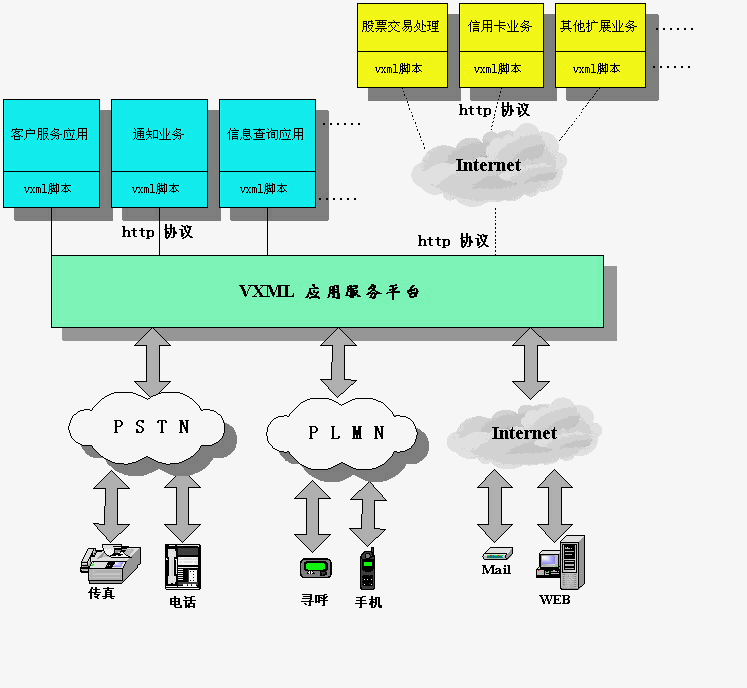 基于VXML的語音應用平臺使得象電話這種最傳統(tǒng)的通訊工具可以實時便捷地訪問因特網,而無需任何座席的幫助。