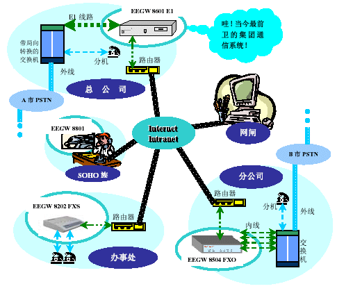 - 現(xiàn)有的模擬設備例如集團電話電話機PBX保持不變