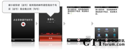 聲龍(Dragon)系列應(yīng)用軟件是基于Nuance著名的Dragon NaturallySpeaking® 語(yǔ)音軟件開發(fā)的應(yīng)用,借助語(yǔ)音識(shí)別技術(shù),用戶在輕松自然說(shuō)話時(shí),就可將語(yǔ)音即時(shí)轉(zhuǎn)換成要發(fā)送的短信文本或電子郵件,更新社交網(wǎng)絡(luò)狀態(tài)和進(jìn)行網(wǎng)絡(luò)搜索。事實(shí)證明,語(yǔ)音識(shí)別的速度比使用鍵盤輸入文字快上五倍以上。