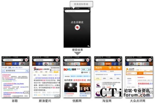 適用于iPhone™、iPad™和iPod touch™的聲龍搜索(Dragon Search)同時(shí)也在蘋果 App Store推出,為用戶提供強(qiáng)大的語(yǔ)音搜索功能;谠摦a(chǎn)品,用戶只需說(shuō)出自己的搜索要求,便可通過(guò)移動(dòng)網(wǎng)絡(luò)找到相應(yīng)的信息和答案。 另外,聲龍搜索(Dragon Search)創(chuàng)新的搜索功能界面(Dragon Search Carousel)還可以支持用戶同時(shí)訪問(wèn)包括谷歌、新浪愛問(wèn)、優(yōu)酷網(wǎng)、淘寶網(wǎng)和大眾點(diǎn)評(píng)網(wǎng)等多個(gè)熱門網(wǎng)站和搜索引擎,并在幾秒鐘內(nèi)獲得來(lái)自多個(gè)內(nèi)容來(lái)源的搜索結(jié)果。