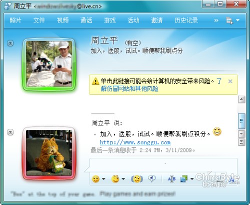 通常來說,用戶成為垃圾信息的目標(biāo)主要源于用戶泄露賬戶信息。一些未經(jīng)微軟認(rèn)證的第三方網(wǎng)站在會員注冊程序中為盜取用戶MSN賬號及密碼設(shè)下一個圈套,即要求注冊者提交MSN賬號和密碼。網(wǎng)站獲取到MSN用戶賬號和密碼后,通過架設(shè)的“機(jī)器人”服務(wù)器(即一種惡意程序,可通過自動勘測方式,獲取用戶賬號密碼),自動登錄該用戶Messenger,并按好友名單自動傳播垃圾信息鏈接。一旦用戶以為是好友發(fā)送的,點(diǎn)擊這個鏈接后,自己的電腦也會感染,會再繼續(xù)自動向其他好友發(fā)送同樣的廣告信息鏈接,就這樣,呈幾何級數(shù)進(jìn)行傳播。