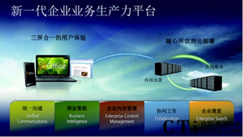 云計算是數(shù)十年來 IT 行業(yè)的重大革新,越來越多的企業(yè)和組織正在評估和規(guī)劃基于云的IT解決方案。根據(jù)市場調(diào)查,目前用戶最希望利用云計算協(xié)助日常的行政辦公業(yè) 務(wù),以提升生產(chǎn)力及競爭力,由此,微軟特別針對這些客戶推出辦公云解決方案(OA Cloud)。CTI論壇報道