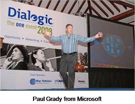 第二天上午,會議以Dialogic總裁兼CEO Nick Jensen強有力的演講開始,隨后是Dialogic執(zhí)行副總裁兼COO Tim Murray和Dialogic市場高級副總裁Jim Machi。 面向整個宴會廳的與會者,全天的會議包括了來自Dialogic產品線總監(jiān)James Rafferty和Dialogic企業(yè)產品線市場經(jīng)理Bud Walder等內部演講者,和來自Yankee Group, PT. Excelcomindo Pratama 和Microsoft等外部演講者們激動人心的演講。會議結束時,由我們的合作伙伴Bay Talkitec贊助,有三個幸運贏家贏得了iPod touch 16G,iPod nano 8G和4G。