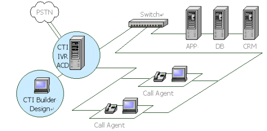 。。CTI Builder本身是一個(gè)軟交換機(jī),具有普通程控交換機(jī)的功能,如:分機(jī)切轉(zhuǎn)、外線呼入、內(nèi)線呼出、轉(zhuǎn)接電話、代接電話等等,同時(shí)還具有一些高級功能如:語音信箱、排隊(duì)機(jī)、內(nèi)線組呼叫、高級選線等功能。也就是說,系統(tǒng)已經(jīng)提供了呼叫中心通用的功能,用戶只需要定義自己的業(yè)務(wù)而不必關(guān)心呼叫中心的內(nèi)部交換。