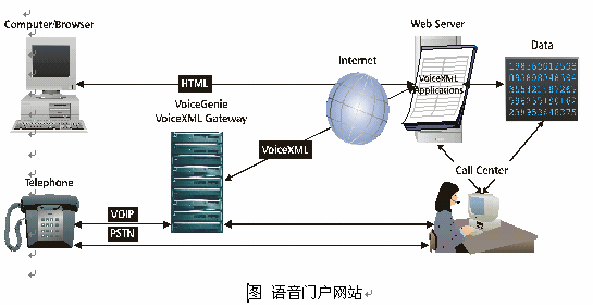 VoiceSoft先進(jìn)的技術(shù)可以將傳統(tǒng)的電力公司的網(wǎng)站改造為語(yǔ)音門(mén)戶(hù)網(wǎng)站,用戶(hù)既可以通過(guò)傳統(tǒng)的internet方式瀏覽電力公司網(wǎng)站,也可以通過(guò)電話(huà)撥入的方式獲得網(wǎng)站上的信息,使用網(wǎng)站上的功能,利用ASP的技術(shù),實(shí)現(xiàn)語(yǔ)音服務(wù)數(shù)據(jù)和網(wǎng)上瀏覽數(shù)據(jù)同步更新。