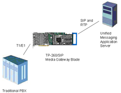 大量的下一代 UM 平臺都被設(shè)計為使用 SIP 作為應(yīng)用和外部世界之間唯一的接口。 將關(guān)注的重點(diǎn)集中于 SIP 可以為開發(fā)人員帶來許多好處,但會為 VAR/集成商帶來將 UM 應(yīng)用與現(xiàn)有 PBX 設(shè)備進(jìn)行接口方面的挑戰(zhàn)。 解決的方法是使用媒體網(wǎng)關(guān)來提供PBX 上 TDM 接口和 UM 應(yīng)用的 SIP 接口之間的轉(zhuǎn)換。
