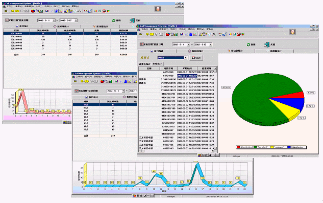 ·按照時(shí)間對來電以及Traffic進(jìn)行統(tǒng)計(jì),并且從立體折線圖中看到所選的日期內(nèi)各個(gè)時(shí)間段的呼叫分布數(shù);