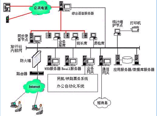 對于20個以下人工座席的中小型旅行社客戶服務(wù)中心系統(tǒng),則建議使用基于計算機語音板卡的方式,可以減少投資,同時具有良好的系統(tǒng)性能;對于大型的旅行社客戶服務(wù)中心系統(tǒng),可選用排隊交換機作為語音接入設(shè)備,以保障系統(tǒng)的高可靠性和穩(wěn)定性;大大提高了系統(tǒng)的適應(yīng)面。