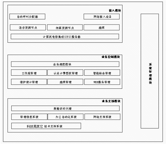 系統(tǒng)管理模塊提供對(duì)全系統(tǒng)完善的設(shè)備管理、網(wǎng)絡(luò)管理、運(yùn)營維護(hù)管理、服務(wù)質(zhì)量管理、業(yè)務(wù)信息管理及決策分析等功能,幫助科技局客戶服務(wù)中心運(yùn)營者用好系統(tǒng),把握市場(chǎng)動(dòng)態(tài),不斷提高服務(wù)質(zhì)量。