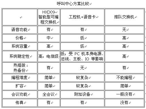 我們知道,呼叫中心的硬件實(shí)現(xiàn)方案/語(yǔ)音接入方式傳統(tǒng)的有兩種:工控機(jī)+語(yǔ)音卡,排隊(duì)交換機(jī)。對(duì)比如下: