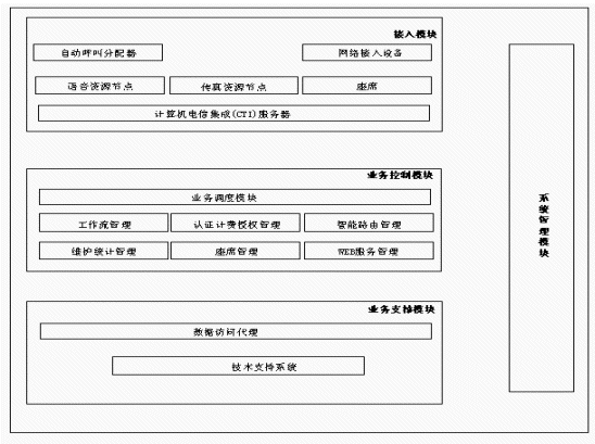 另外從CTI技術(shù)和呼叫中心的角度來(lái)看,也應(yīng)當(dāng)實(shí)現(xiàn)適當(dāng)線路數(shù)的自動(dòng)語(yǔ)音應(yīng)答(IVR)功能,呼叫/業(yè)務(wù)處理數(shù)據(jù)的統(tǒng)計(jì)功能,電話(huà)錄音留言功能,對(duì)主叫用戶(hù)和被叫信息號(hào)碼的有效性進(jìn)行檢查的功能,系統(tǒng)管理維護(hù)功能等才能構(gòu)成一個(gè)完整的呼叫中心系統(tǒng)。