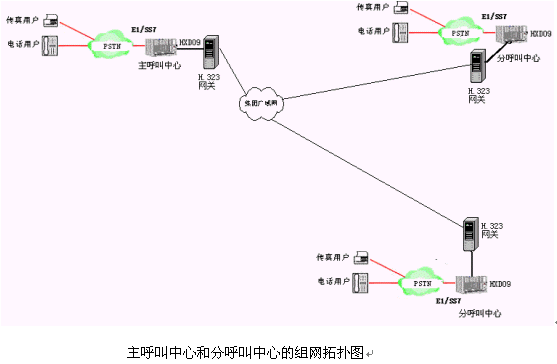 主呼叫中心和多個(gè)分呼叫中心均采用采用一體化的可編程智能語(yǔ)音交換機(jī)的呼叫中心。