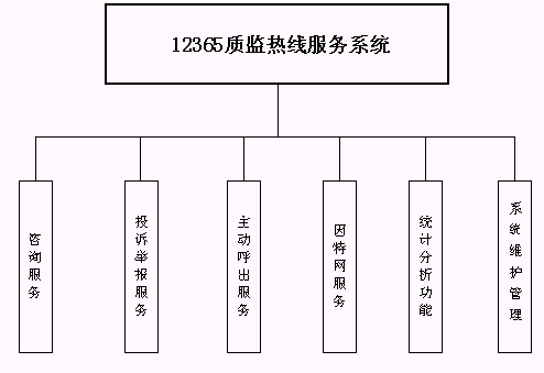 系統(tǒng)由一系列相對獨立而又緊密聯(lián)系的模塊軟件組成,集自動語音服務、自動留言服務、人工座席(質(zhì)量技術監(jiān)督局工作人員)服務、信息資料處理等于一體,提供了一套完整的12365質(zhì)監(jiān)熱線服務系統(tǒng)的解決方案。各個功能模塊之間即可獨立運行,也可自由組合進行工作,各質(zhì)量技術監(jiān)督局可以根據(jù)各自的特點靈活的進行模塊配置,為質(zhì)量技術監(jiān)督局量身定做。