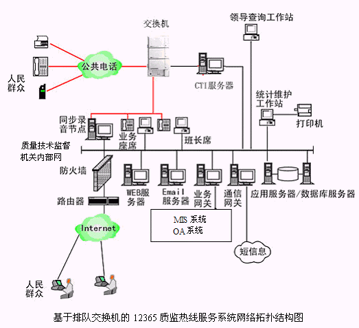 基于排隊交換機的12365質(zhì)監(jiān)熱線服務系統(tǒng)網(wǎng)絡拓撲結(jié)構(gòu)圖