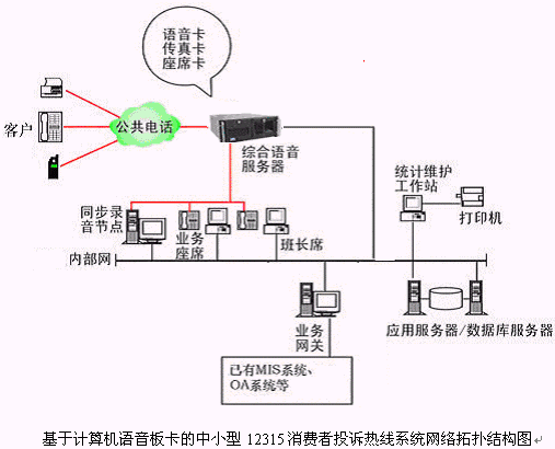 本系統(tǒng)物理結(jié)構(gòu)由帶語音板卡的高性能工控機(稱為綜合語音服務器,在功能上可以分為CTI服務器、IVR(交互式語音應答)/IFR服務器、統(tǒng)計維護管理工作站、數(shù)據(jù)庫/應用服務器、錄音留言工作站、業(yè)務網(wǎng)關服務器、業(yè)務代表座席、網(wǎng)絡系統(tǒng)等和應用軟件構(gòu)成。