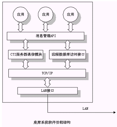人工座席子系統(tǒng)是人工信息查詢子系統(tǒng),由業(yè)務代表、耳機/話務盒、運行Windows系統(tǒng)的PC微機以及相應的具體業(yè)務處理應用軟件等組成。耳機主要用于與客戶通話,PC機主要用于記錄客戶基本信息或服務信息,或是用于檢索客戶所需的業(yè)務信息。