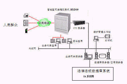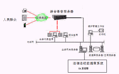 該系統(tǒng)的設(shè)計(jì)采用先進(jìn)的三層CLIENT/SERVER網(wǎng)絡(luò)體系結(jié)構(gòu),集目前先進(jìn)的計(jì)算機(jī)技術(shù)、通信技術(shù)、計(jì)算機(jī)電信集成(CTI)技術(shù)、多媒體呼叫接入技術(shù)、智能接入交換分配技術(shù)、數(shù)字語音處理技術(shù)、異構(gòu)系統(tǒng)信息交互技術(shù)、INTERNET網(wǎng)絡(luò)技術(shù)、安全容錯技術(shù)、網(wǎng)絡(luò)組網(wǎng)技術(shù)等于一體,并與地級市司法行政部門/法院已有技術(shù)支持系統(tǒng)(如MIS系統(tǒng)、法律法規(guī)數(shù)據(jù)庫系統(tǒng)等)緊密結(jié)合在一起,突破時(shí)空的限制,通過人工座席、自動語音/傳真、司法部門相關(guān)人員等為群眾提供電話、傳真、手機(jī)等多種服務(wù)形式的周到、快捷、全方位的法律服務(wù),為人民群眾與地級市司法行政部門/法院之間架起一座密切聯(lián)系的橋梁。