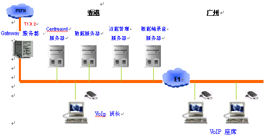 于本年一月初,基于Concerto Software平臺(tái)建設(shè)的中港跨境呼叫中心正式由本公司替GIS于香港及廣州開(kāi)通。初期于廣州之座席數(shù)目為24。廣州與香港間透過(guò)1條E1專(zhuān)線連接。(結(jié)構(gòu)如下)