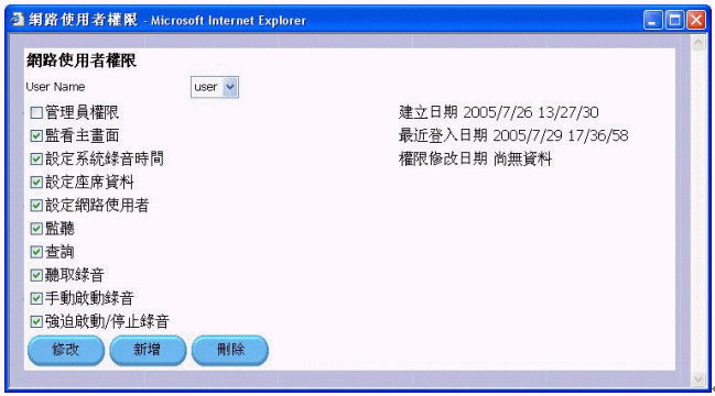 使用者權(quán)限:可在線創(chuàng)建新用戶,并可設(shè)定多級權(quán)限。