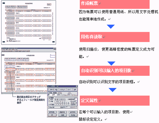 不需以高峰期為標(biāo)準(zhǔn)來(lái)安置人員,格外地提高了人才的效率化。l由于操作簡(jiǎn)單,即使沒有專業(yè)技能和經(jīng)驗(yàn)也能防止輸入錯(cuò)誤。l由于接受訂貨的帳票可以用文字處理機(jī)作成